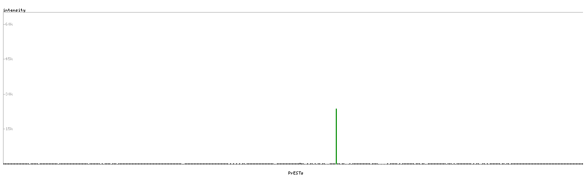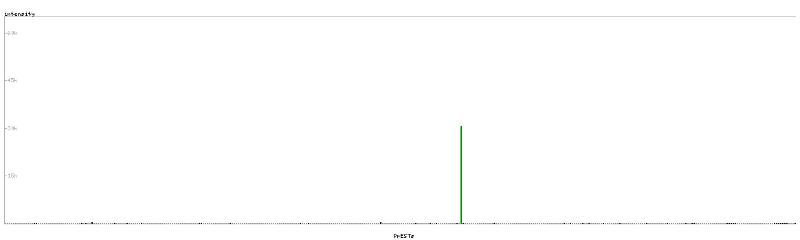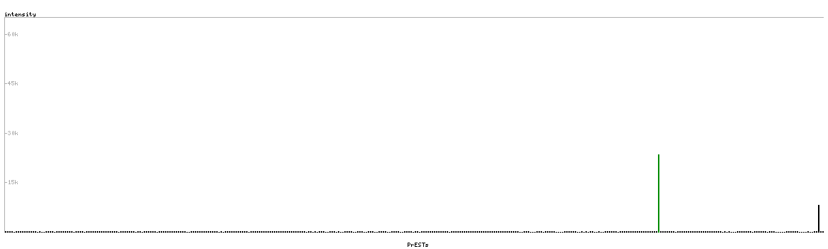 At the top of the view, the position of the antigen (identified by the corresponding HPA identifier) is shown as a green bar. A yellow triangle on the bar indicates a <100% sequence identity to the protein target.