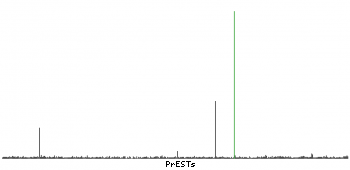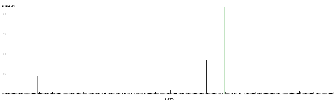 At the top of the view, the position of the antigen (identified by the corresponding HPA identifier) is shown as a green bar. A yellow triangle on the bar indicates a <100% sequence identity to the protein target.