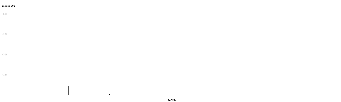 At the top of the view, the position of the antigen (identified by the corresponding HPA identifier) is shown as a green bar. A yellow triangle on the bar indicates a <100% sequence identity to the protein target.
