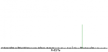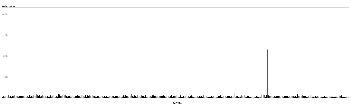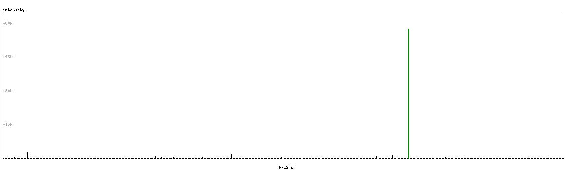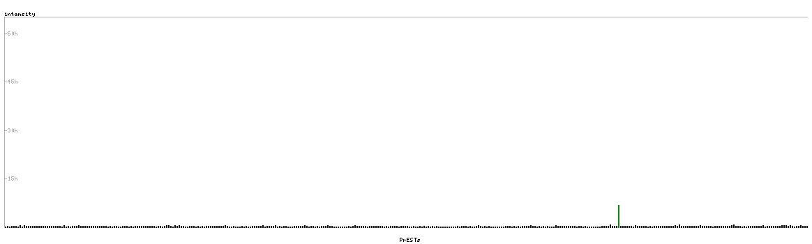 At the top of the view, the position of the antigen (identified by the corresponding HPA identifier) is shown as a green bar. A yellow triangle on the bar indicates a <100% sequence identity to the protein target.
