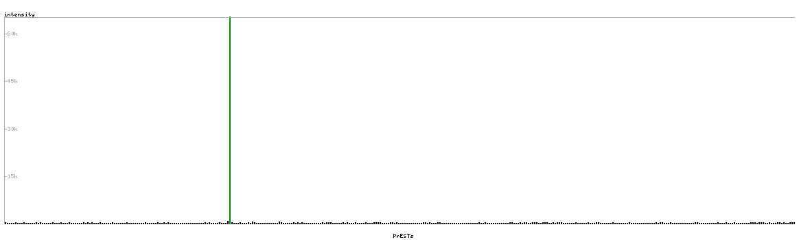 At the top of the view, the position of the antigen (identified by the corresponding HPA identifier) is shown as a green bar. A yellow triangle on the bar indicates a <100% sequence identity to the protein target.