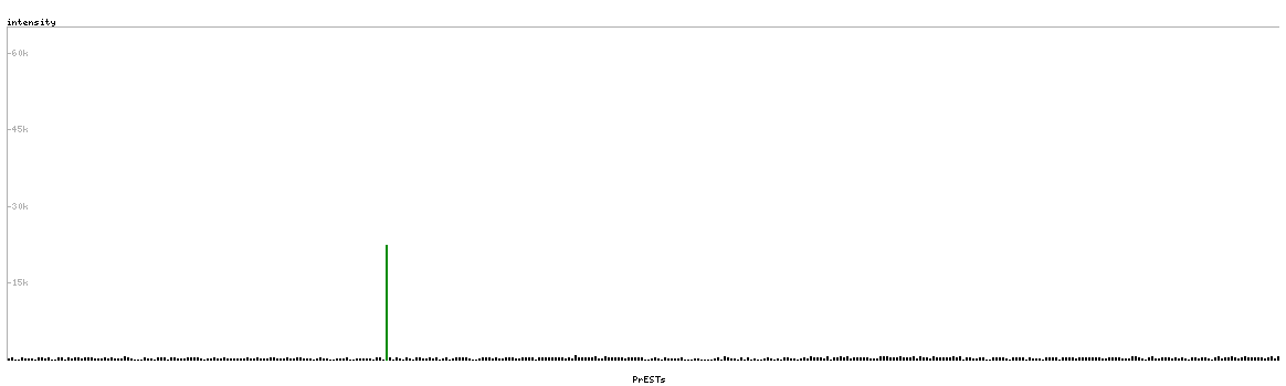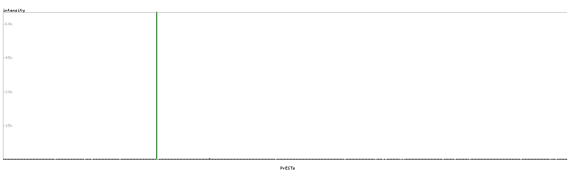 At the top of the view, the position of the antigen (identified by the corresponding HPA identifier) is shown as a green bar. A yellow triangle on the bar indicates a <100% sequence identity to the protein target.