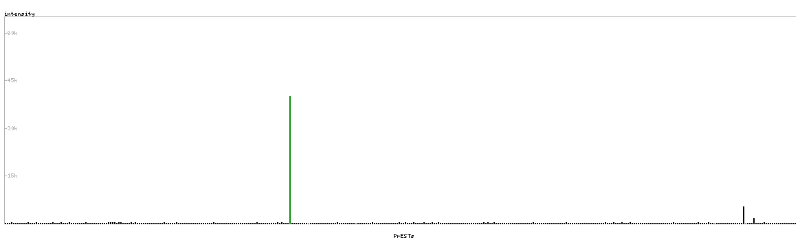 At the top of the view, the position of the antigen (identified by the corresponding HPA identifier) is shown as a green bar. A yellow triangle on the bar indicates a <100% sequence identity to the protein target.
