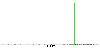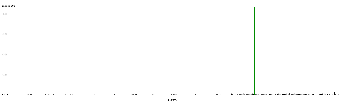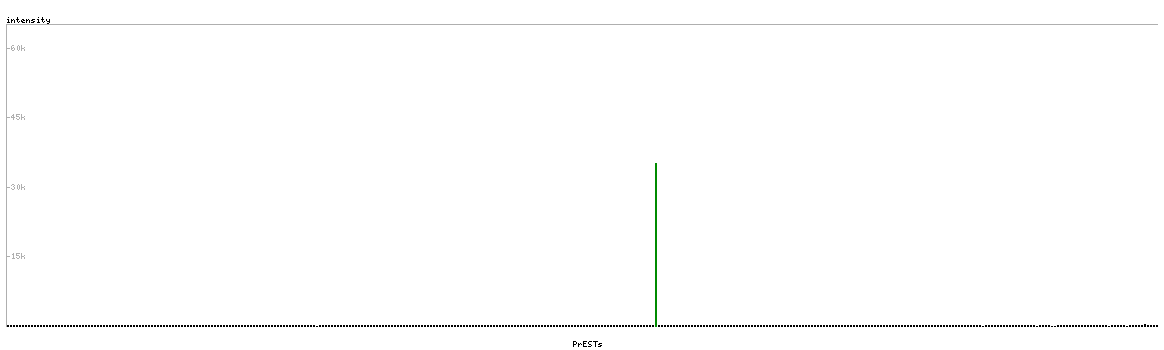 At the top of the view, the position of the antigen (identified by the corresponding HPA identifier) is shown as a green bar. A yellow triangle on the bar indicates a <100% sequence identity to the protein target.