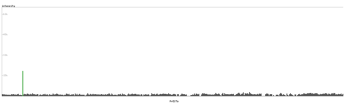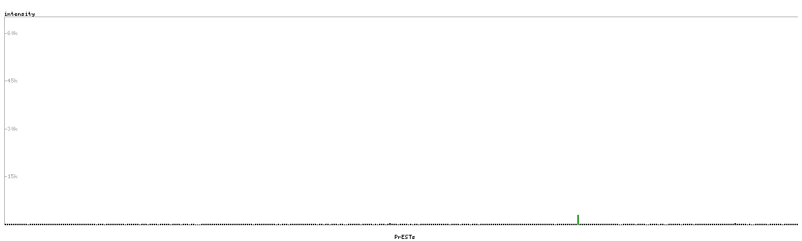 At the top of the view, the position of the antigen (identified by the corresponding HPA identifier) is shown as a green bar. A yellow triangle on the bar indicates a <100% sequence identity to the protein target.