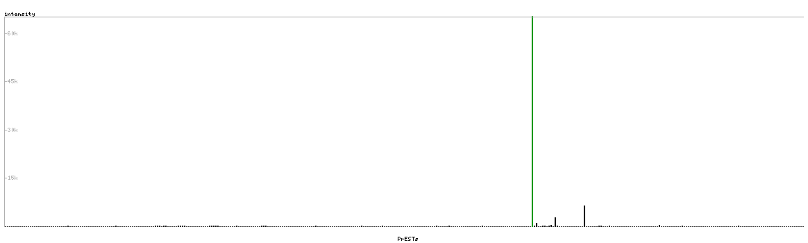 At the top of the view, the position of the antigen (identified by the corresponding HPA identifier) is shown as a green bar. A yellow triangle on the bar indicates a <100% sequence identity to the protein target.