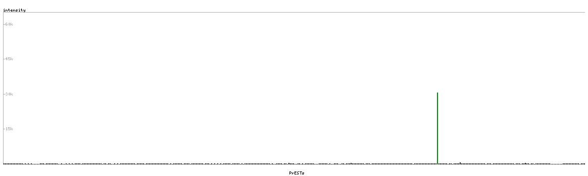 At the top of the view, the position of the antigen (identified by the corresponding HPA identifier) is shown as a green bar. A yellow triangle on the bar indicates a <100% sequence identity to the protein target.