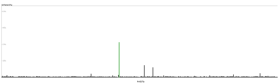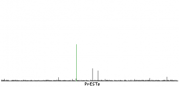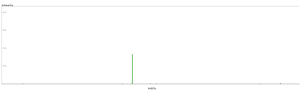 At the top of the view, the position of the antigen (identified by the corresponding HPA identifier) is shown as a green bar. A yellow triangle on the bar indicates a <100% sequence identity to the protein target.