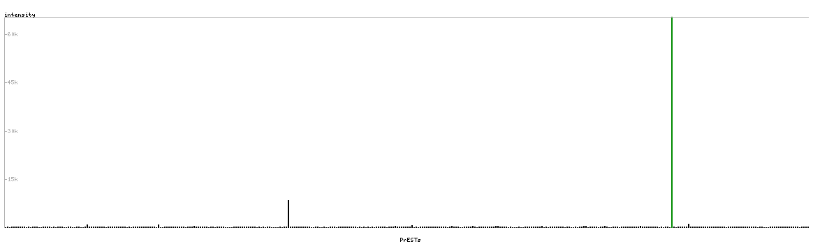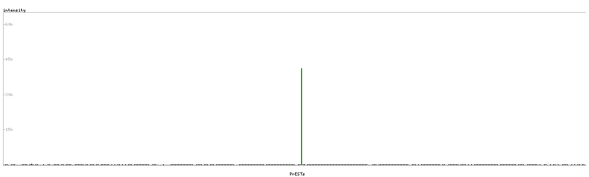 At the top of the view, the position of the antigen (identified by the corresponding HPA identifier) is shown as a green bar. A yellow triangle on the bar indicates a <100% sequence identity to the protein target.