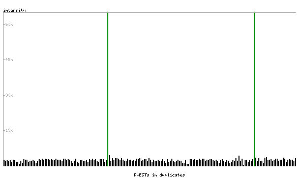 At the top of the view, the position of the antigen (identified by the corresponding HPA identifier) is shown as a green bar. A yellow triangle on the bar indicates a <100% sequence identity to the protein target.