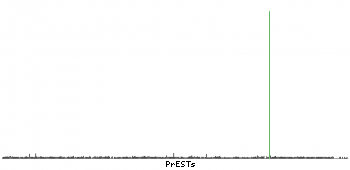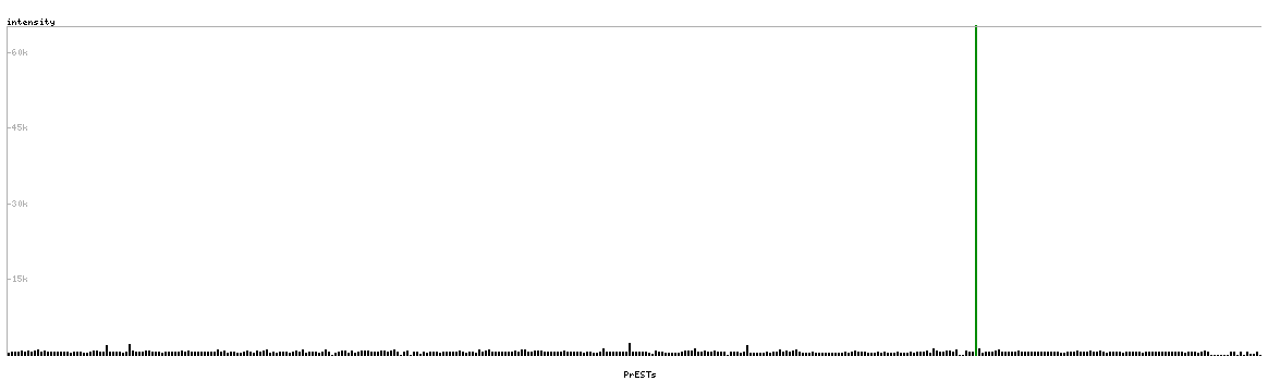 At the top of the view, the position of the antigen (identified by the corresponding HPA identifier) is shown as a green bar. A yellow triangle on the bar indicates a <100% sequence identity to the protein target.