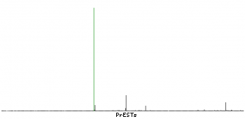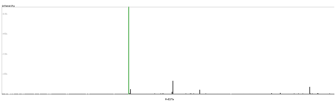 At the top of the view, the position of the antigen (identified by the corresponding HPA identifier) is shown as a green bar. A yellow triangle on the bar indicates a <100% sequence identity to the protein target.