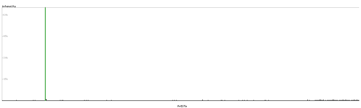 At the top of the view, the position of the antigen (identified by the corresponding HPA identifier) is shown as a green bar. A yellow triangle on the bar indicates a <100% sequence identity to the protein target.