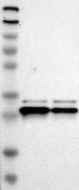 Antibody band pattern is confirmed by antibody HPA011057. Analysis performed using a standard panel of samples.