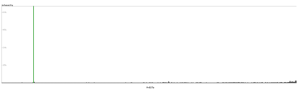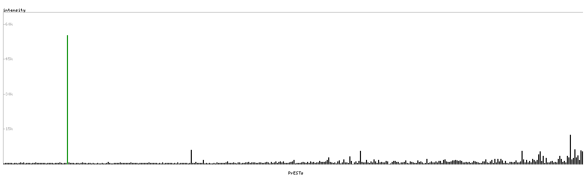 At the top of the view, the position of the antigen (identified by the corresponding HPA identifier) is shown as a green bar. A yellow triangle on the bar indicates a <100% sequence identity to the protein target.