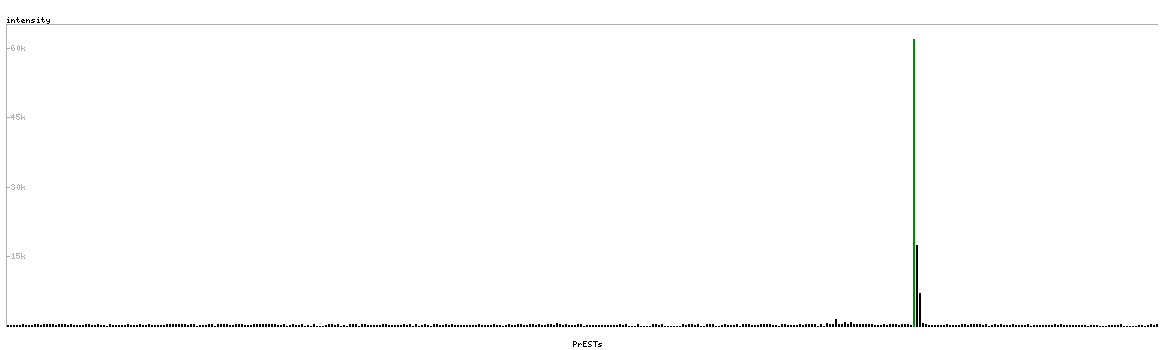 At the top of the view, the position of the antigen (identified by the corresponding HPA identifier) is shown as a green bar. A yellow triangle on the bar indicates a <100% sequence identity to the protein target.