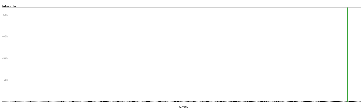 At the top of the view, the position of the antigen (identified by the corresponding HPA identifier) is shown as a green bar. A yellow triangle on the bar indicates a <100% sequence identity to the protein target.