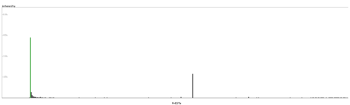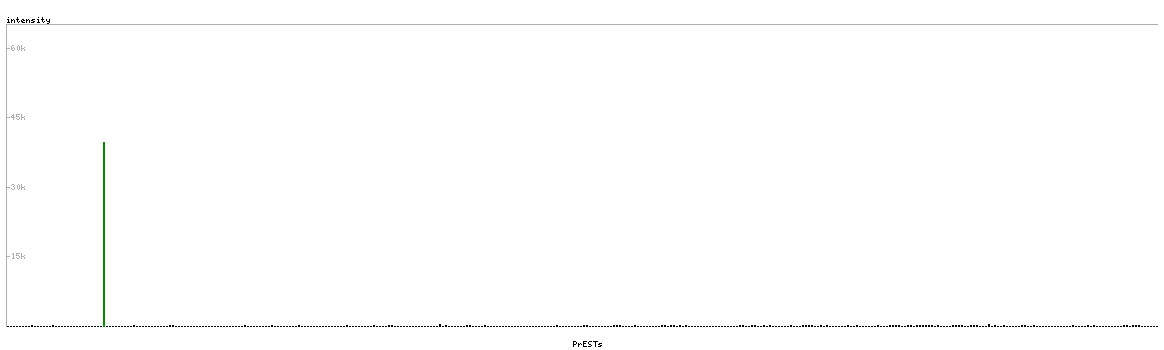 At the top of the view, the position of the antigen (identified by the corresponding HPA identifier) is shown as a green bar. A yellow triangle on the bar indicates a <100% sequence identity to the protein target.