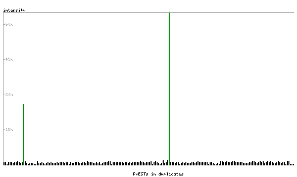 At the top of the view, the position of the antigen (identified by the corresponding HPA identifier) is shown as a green bar. A yellow triangle on the bar indicates a <100% sequence identity to the protein target.