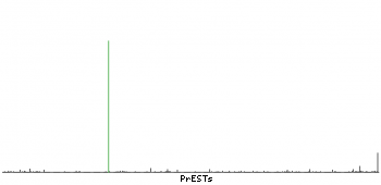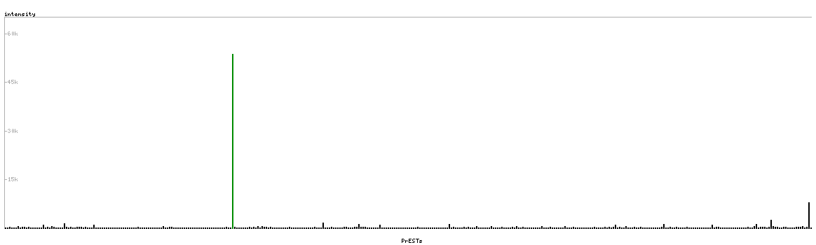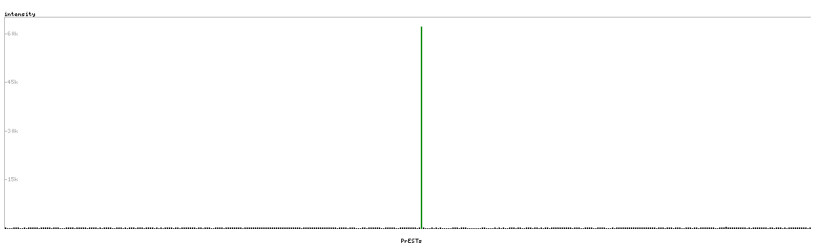 At the top of the view, the position of the antigen (identified by the corresponding HPA identifier) is shown as a green bar. A yellow triangle on the bar indicates a <100% sequence identity to the protein target.