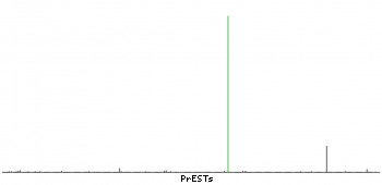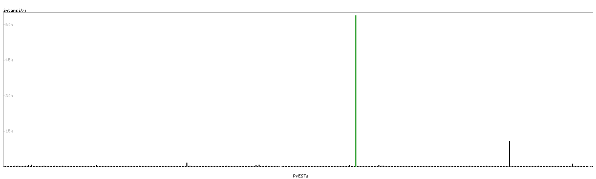 At the top of the view, the position of the antigen (identified by the corresponding HPA identifier) is shown as a green bar. A yellow triangle on the bar indicates a <100% sequence identity to the protein target.