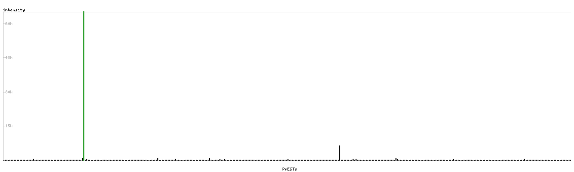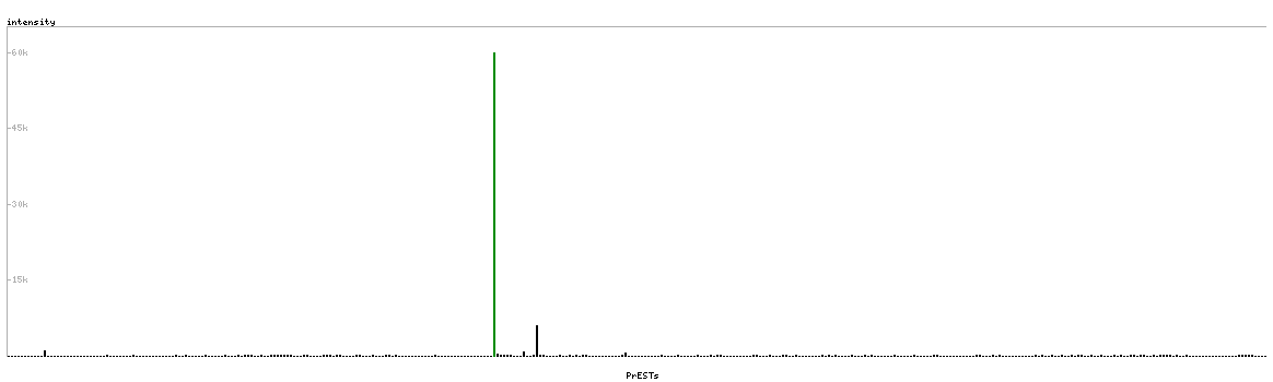 At the top of the view, the position of the antigen (identified by the corresponding HPA identifier) is shown as a green bar. A yellow triangle on the bar indicates a <100% sequence identity to the protein target.