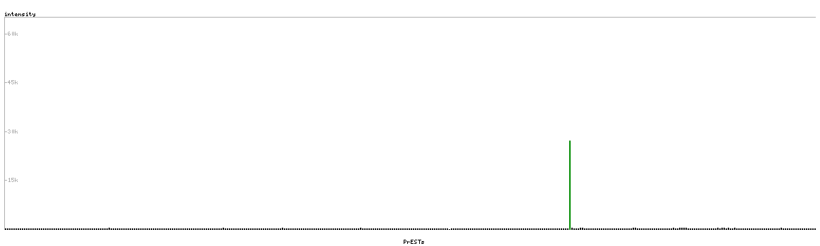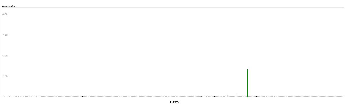 At the top of the view, the position of the antigen (identified by the corresponding HPA identifier) is shown as a green bar. A yellow triangle on the bar indicates a <100% sequence identity to the protein target.