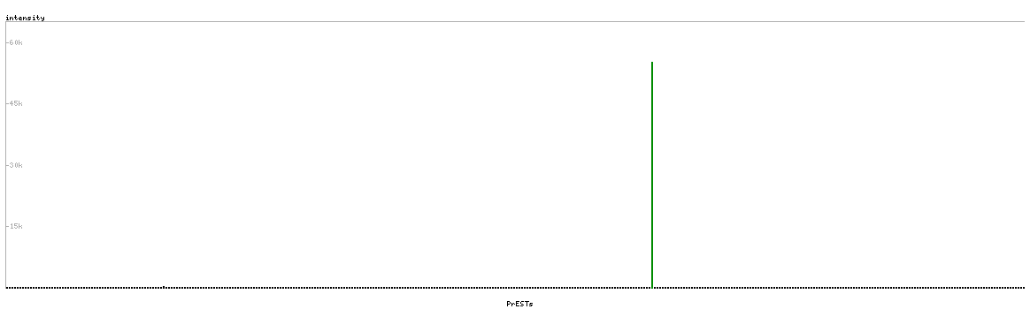 At the top of the view, the position of the antigen (identified by the corresponding HPA identifier) is shown as a green bar. A yellow triangle on the bar indicates a <100% sequence identity to the protein target.