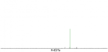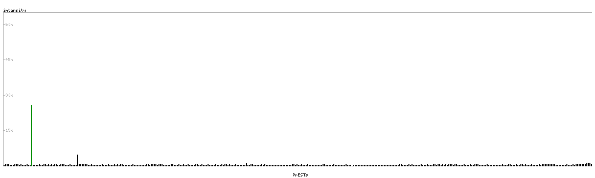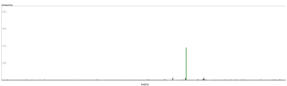 At the top of the view, the position of the antigen (identified by the corresponding HPA identifier) is shown as a green bar. A yellow triangle on the bar indicates a <100% sequence identity to the protein target.
