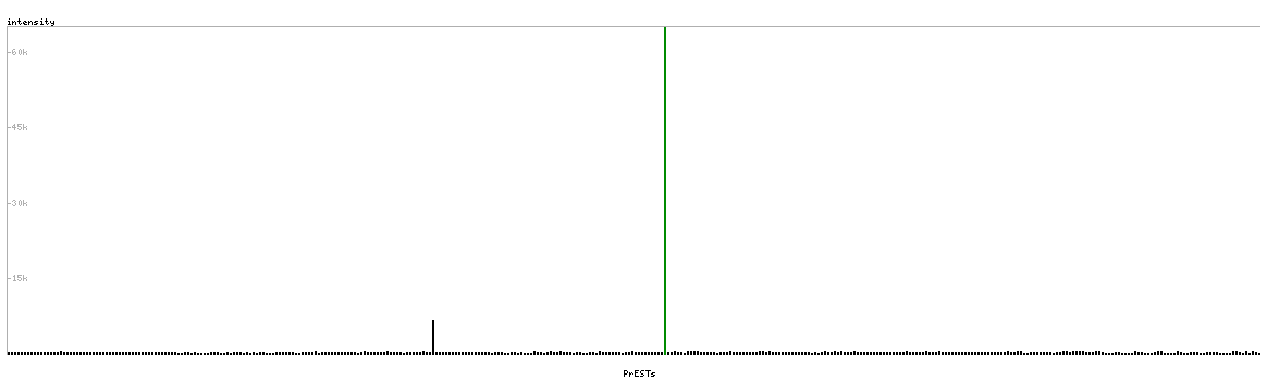 At the top of the view, the position of the antigen (identified by the corresponding HPA identifier) is shown as a green bar. A yellow triangle on the bar indicates a <100% sequence identity to the protein target.