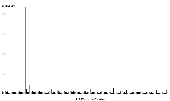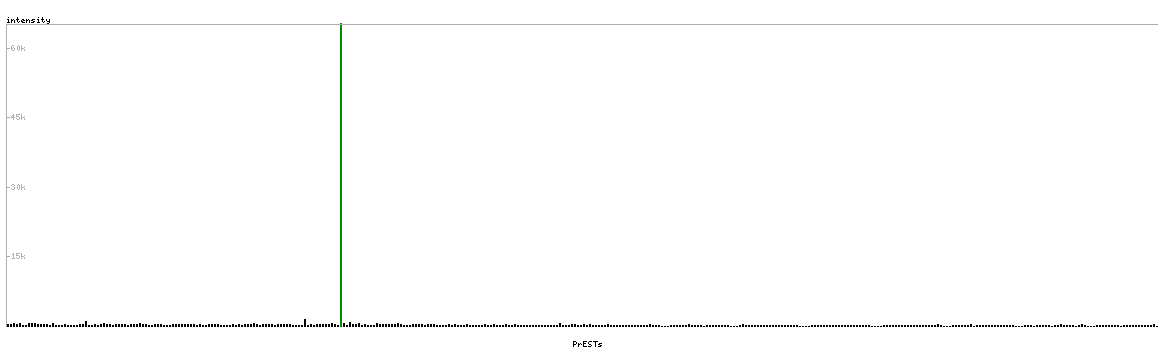 At the top of the view, the position of the antigen (identified by the corresponding HPA identifier) is shown as a green bar. A yellow triangle on the bar indicates a <100% sequence identity to the protein target.