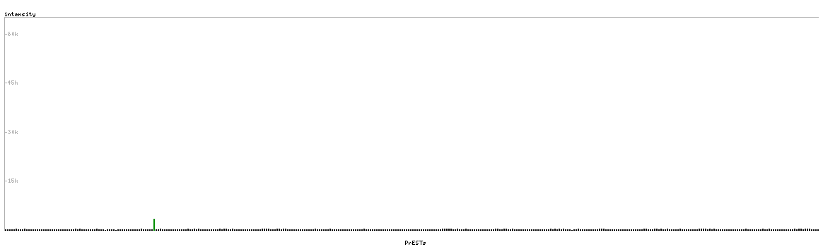 At the top of the view, the position of the antigen (identified by the corresponding HPA identifier) is shown as a green bar. A yellow triangle on the bar indicates a <100% sequence identity to the protein target.