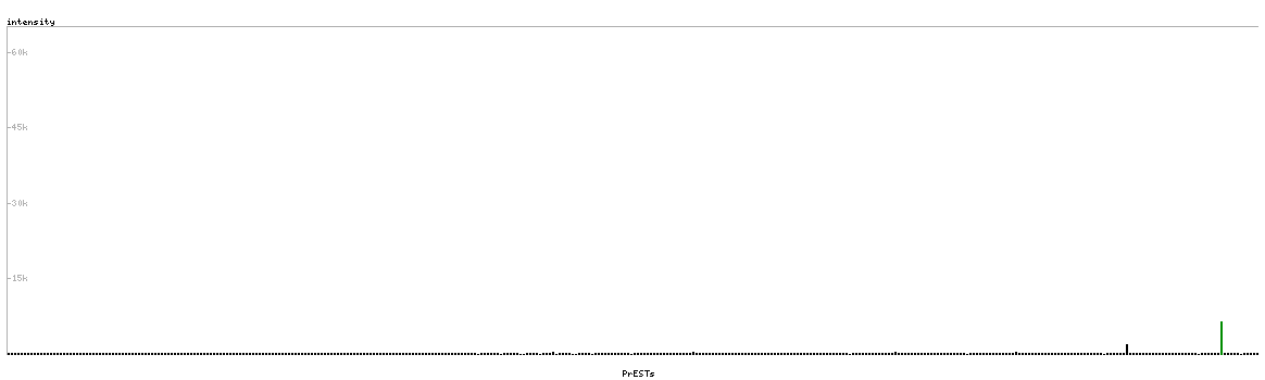 At the top of the view, the position of the antigen (identified by the corresponding HPA identifier) is shown as a green bar. A yellow triangle on the bar indicates a <100% sequence identity to the protein target.