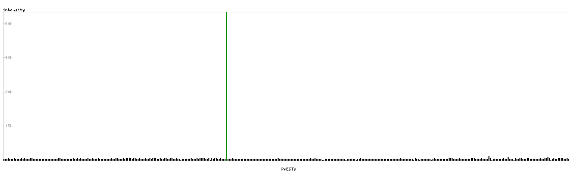 At the top of the view, the position of the antigen (identified by the corresponding HPA identifier) is shown as a green bar. A yellow triangle on the bar indicates a <100% sequence identity to the protein target.