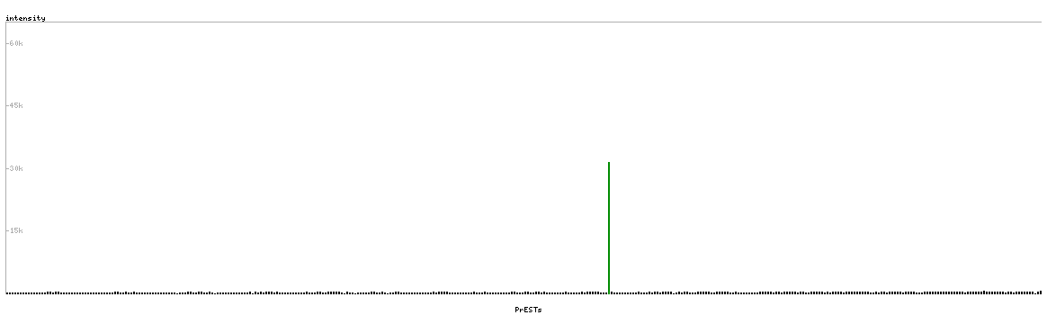 At the top of the view, the position of the antigen (identified by the corresponding HPA identifier) is shown as a green bar. A yellow triangle on the bar indicates a <100% sequence identity to the protein target.