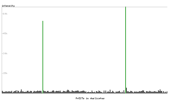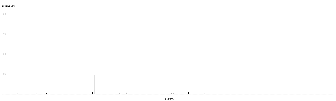 At the top of the view, the position of the antigen (identified by the corresponding HPA identifier) is shown as a green bar. A yellow triangle on the bar indicates a <100% sequence identity to the protein target.