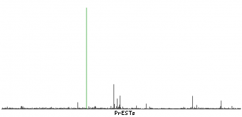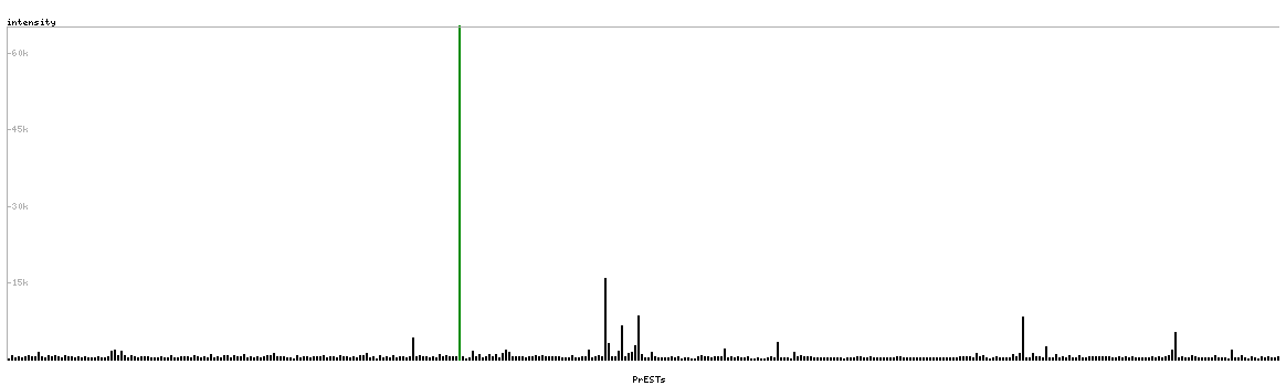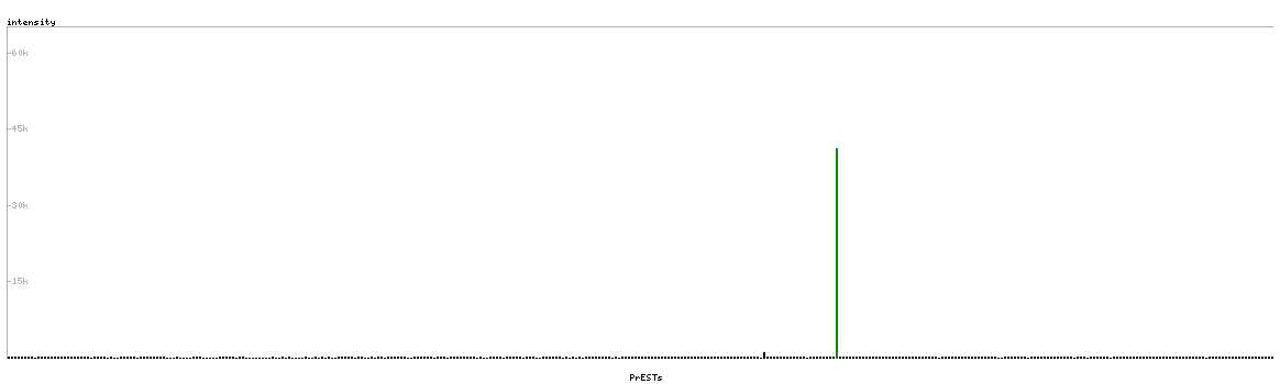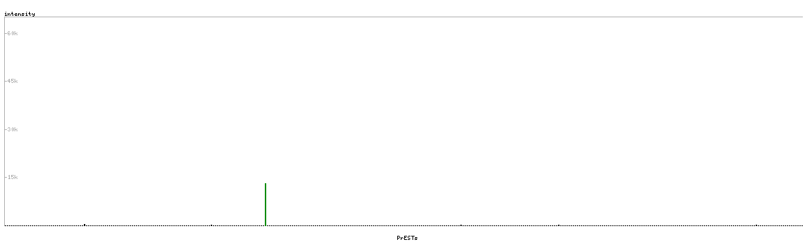 At the top of the view, the position of the antigen (identified by the corresponding HPA identifier) is shown as a green bar. A yellow triangle on the bar indicates a <100% sequence identity to the protein target.