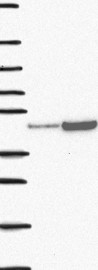 A Western blot analysis is performed on a panel of human tissues and cell lines to evaluate antibody specificity. For antibodies with unreliable result a revalidation using an over-expression lysate is performed.