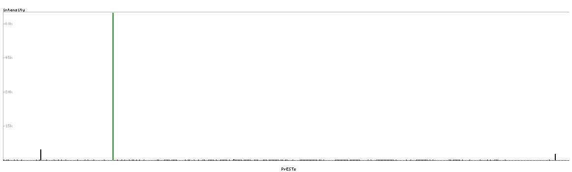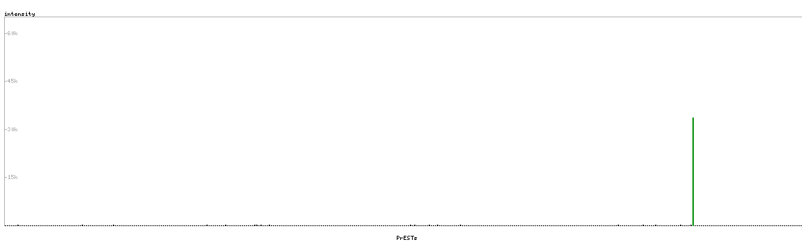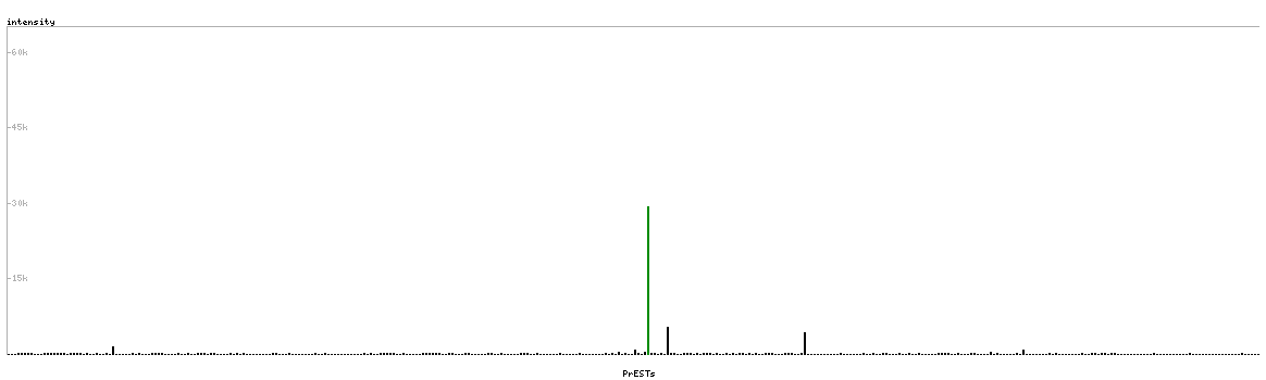 At the top of the view, the position of the antigen (identified by the corresponding HPA identifier) is shown as a green bar. A yellow triangle on the bar indicates a <100% sequence identity to the protein target.