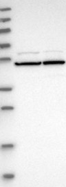 A Western blot analysis is performed on a panel of human tissues and cell lines to evaluate antibody specificity. For antibodies with unreliable result a revalidation using an over-expression lysate is performed.