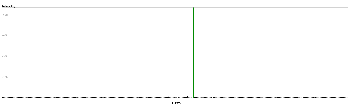 At the top of the view, the position of the antigen (identified by the corresponding HPA identifier) is shown as a green bar. A yellow triangle on the bar indicates a <100% sequence identity to the protein target.