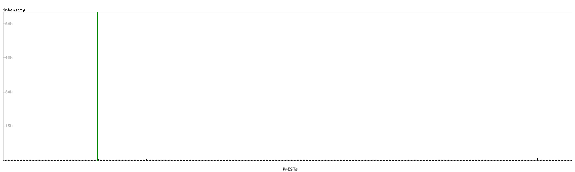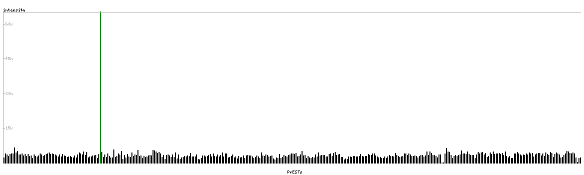 At the top of the view, the position of the antigen (identified by the corresponding HPA identifier) is shown as a green bar. A yellow triangle on the bar indicates a <100% sequence identity to the protein target.