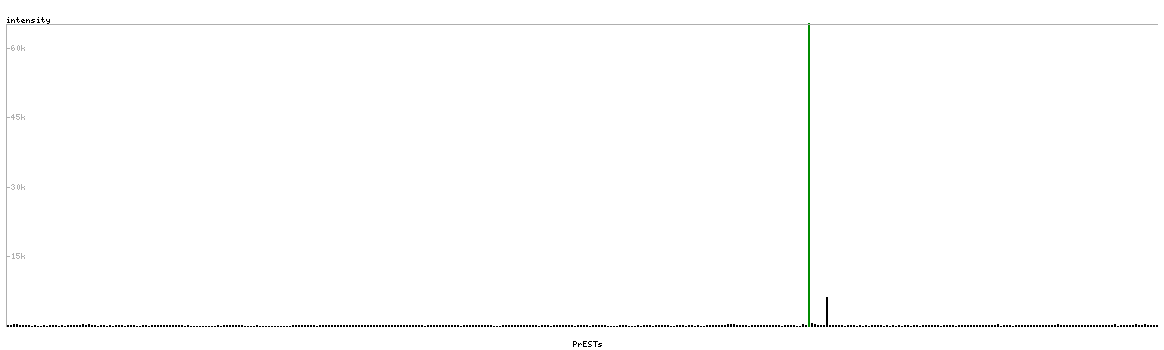 At the top of the view, the position of the antigen (identified by the corresponding HPA identifier) is shown as a green bar. A yellow triangle on the bar indicates a <100% sequence identity to the protein target.