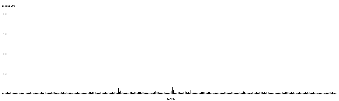 At the top of the view, the position of the antigen (identified by the corresponding HPA identifier) is shown as a green bar. A yellow triangle on the bar indicates a <100% sequence identity to the protein target.