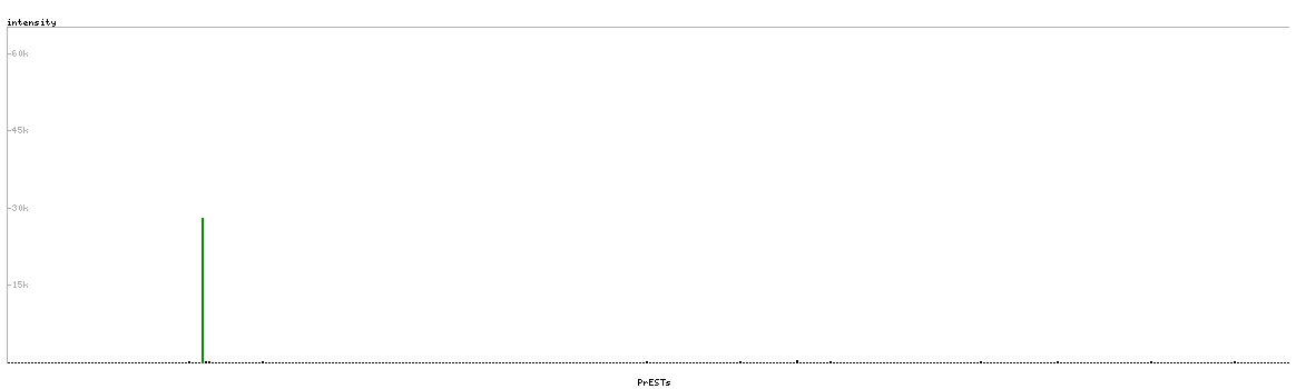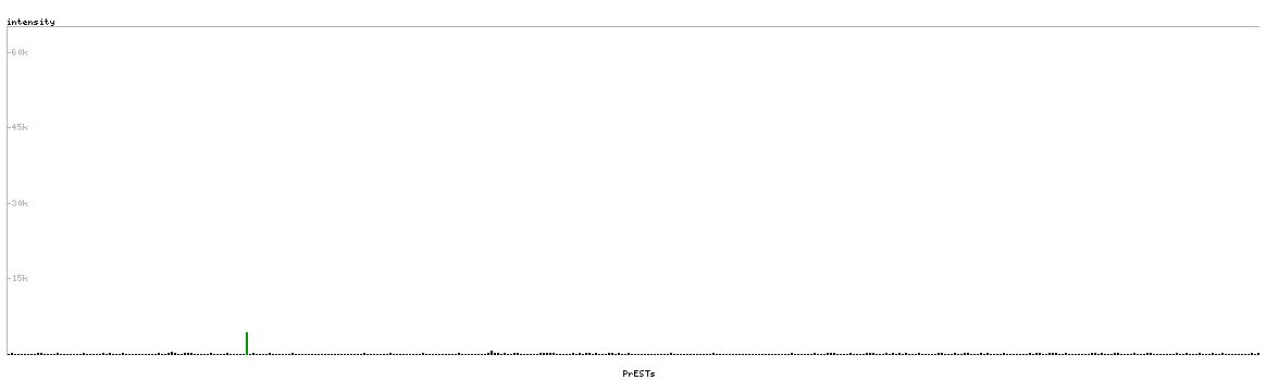 At the top of the view, the position of the antigen (identified by the corresponding HPA identifier) is shown as a green bar. A yellow triangle on the bar indicates a <100% sequence identity to the protein target.