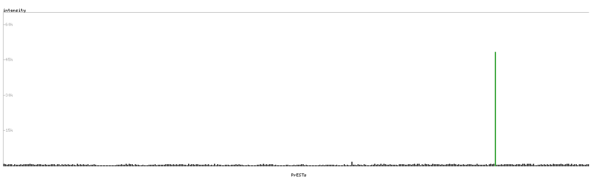 At the top of the view, the position of the antigen (identified by the corresponding HPA identifier) is shown as a green bar. A yellow triangle on the bar indicates a <100% sequence identity to the protein target.