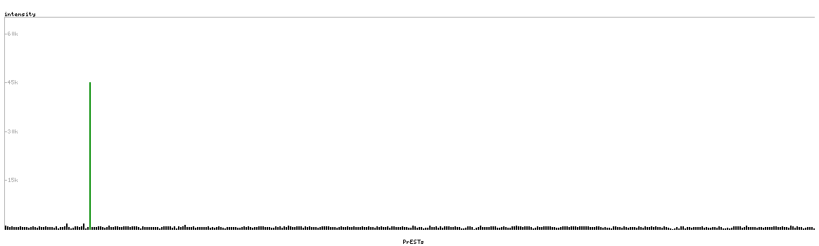At the top of the view, the position of the antigen (identified by the corresponding HPA identifier) is shown as a green bar. A yellow triangle on the bar indicates a <100% sequence identity to the protein target.