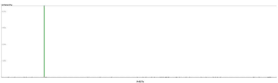 At the top of the view, the position of the antigen (identified by the corresponding HPA identifier) is shown as a green bar. A yellow triangle on the bar indicates a <100% sequence identity to the protein target.