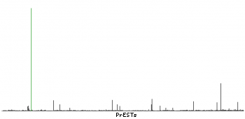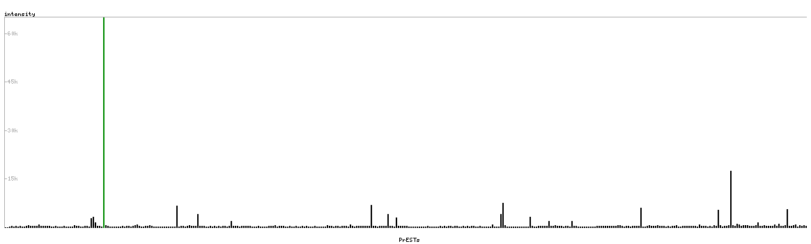At the top of the view, the position of the antigen (identified by the corresponding HPA identifier) is shown as a green bar. A yellow triangle on the bar indicates a <100% sequence identity to the protein target.