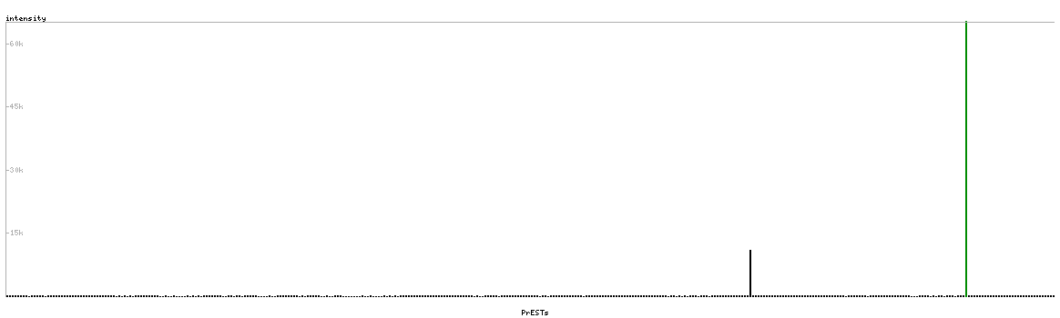 At the top of the view, the position of the antigen (identified by the corresponding HPA identifier) is shown as a green bar. A yellow triangle on the bar indicates a <100% sequence identity to the protein target.